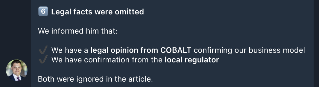 Read that carefully. “Our legal structure of attracting financing does not conflict with Estonian legislation” sounds reassuring. It isn’t.