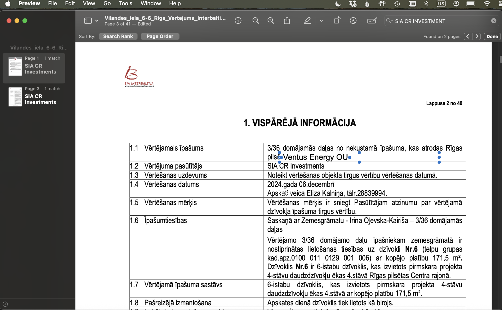 The Ventus blog itself offers a clue. In December 2024, it announced the purchase of “their office building” at Vīlandes 6–6 in Riga: https://ventus.energy/en/news/december-results-2024